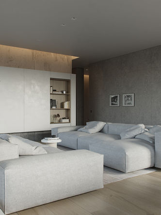 Графичный и сдержанный интерьер, где бетон, свет и строгие объёмы создают атмосферу спокойной ясности